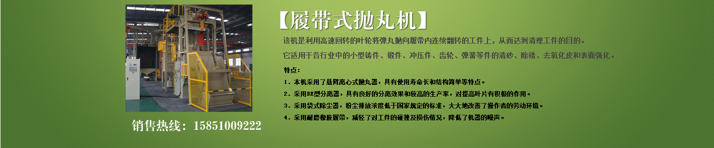 公司主要產(chǎn)品有各種型號拋丸機(jī)、履帶式拋丸機(jī)、吊鉤式拋丸機(jī)、懸鏈?zhǔn)綊佂铏C(jī)、通過式拋丸機(jī);各種型號鑄鋼丸、鋼砂、合金鋼丸、強(qiáng)化鋼丸、不銹鋼丸;噴砂設(shè)備;環(huán)保除塵設(shè)備;鑄造設(shè)備;高效拋丸器;各種型號拋丸機(jī)配件等,并可根據(jù)用戶產(chǎn)品及產(chǎn)量需求設(shè)計(jì)符合要求的拋丸機(jī);本公司產(chǎn)品從設(shè)計(jì)、開發(fā)、生產(chǎn)到服務(wù),全過程實(shí)行監(jiān)控,其產(chǎn)品在全方位立體的營銷服務(wù)網(wǎng)絡(luò)中,遍布全國各省市區(qū)。